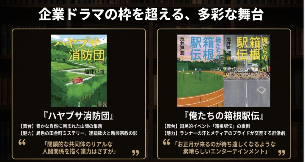 池井戸潤さんの小説は、どれをとってもハズレがなく、私たちの胸を熱くしてくれるものばかりです。