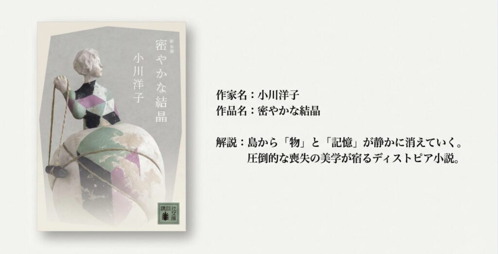 今回は「小川洋子 おすすめ」と探している方に向けて、読みやすい名作から怖いけど美しい物語までご紹介します。