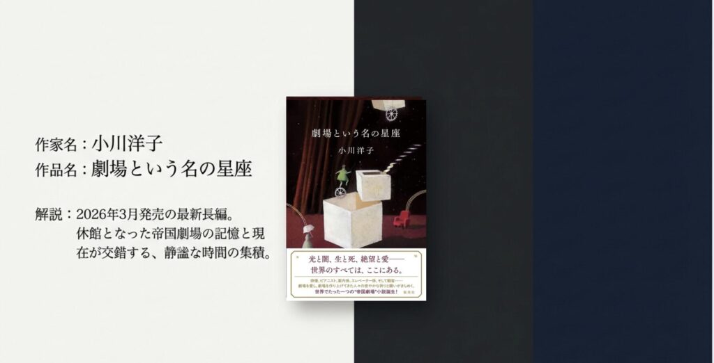 2026年3月に発売が予定されている、小川洋子さんの待望の最新長編です。